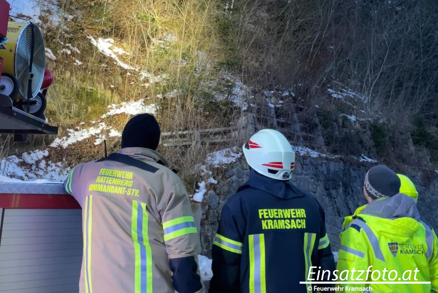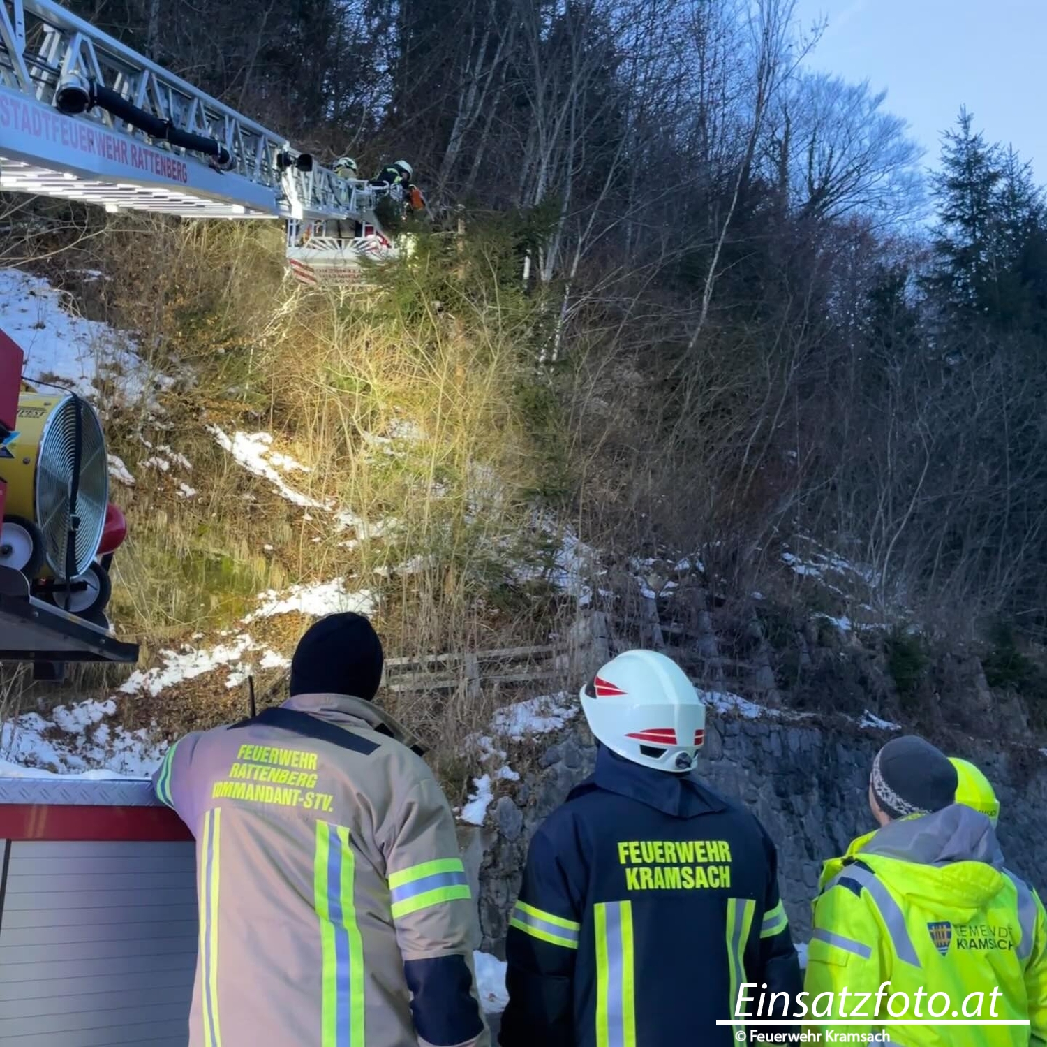 Am 17.01.2026 wurde die Freiwillige Feuerwehr Kramsach zu einem Steinschlag auf der Aschauer Straße alarmiert. Aufgrund der Lage der Bruchstelle im steilen und überhängenden Gelände wurde zur Unterstützung die Drehleiter der Feuerwehr Rattenberg nachalarmiert.