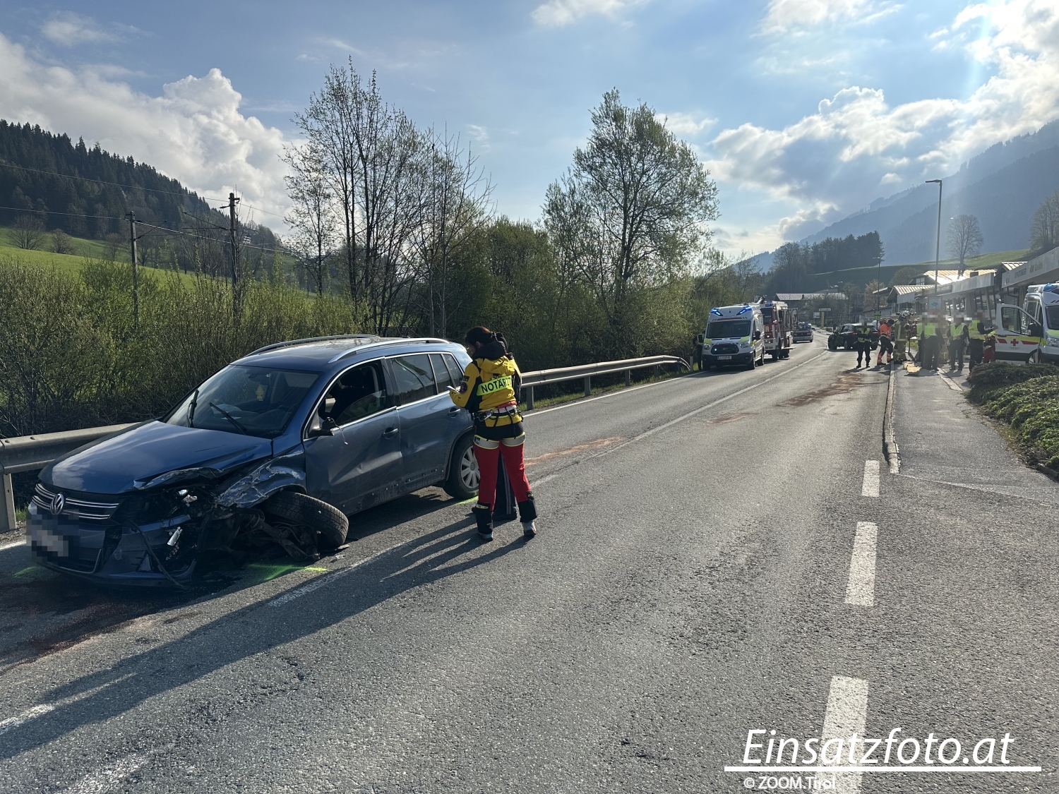 Am 22. April 2026, gegen 08:15 Uhr, lenkte eine 30-jährige Österreicherin einen Pkw auf der Brixentalstraße von St. Johann in Tirol kommend in Richtung Hopfgarten. Auf Höhe des km 14,3 geriet die Frau nach eigenen Angaben auf Grund eines Sekundenschlafs auf die Gegenfahrbahn und stieß gegen den Pkw eines entgegenkommenden 63-jährigen Deutschen. Bei dem Unfall erlitten beide Fahrzeuglenker Verletzungen unbestimmten Grades. Sie wurden in das Krankenhaus St. Johann in Tirol eingeliefert. An den Fahrzeugen entstand schwerer Sachschaden.